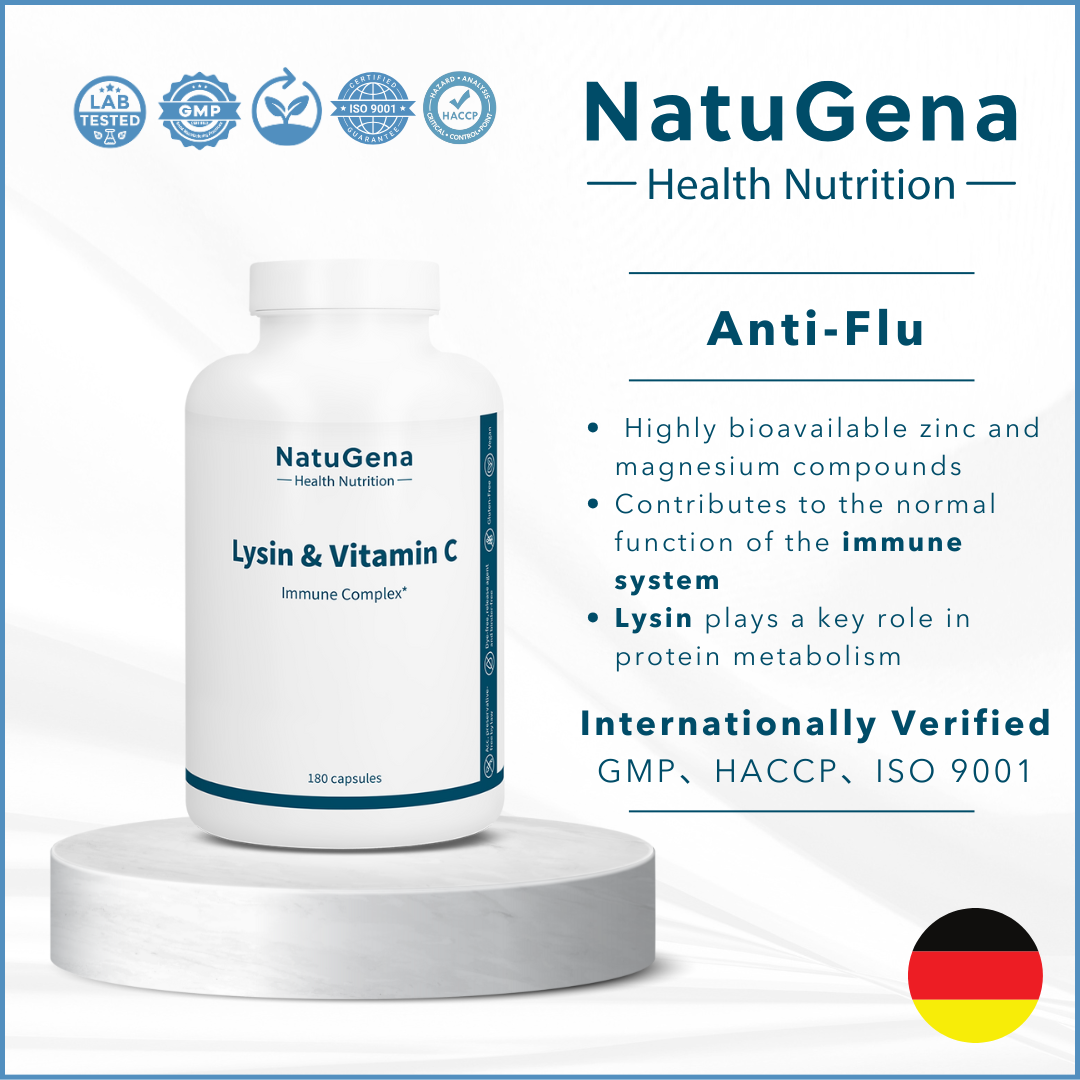 The Lysine & Vitamin C Immune Complex is specially designed to support the body with essential nutrients that play a central role in the immune system.